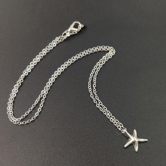 Cute Little Starfish Pendant Necklace Earrings For Women Girls Fashion Silver Sea Star Pentagram Charms Jewelry Set