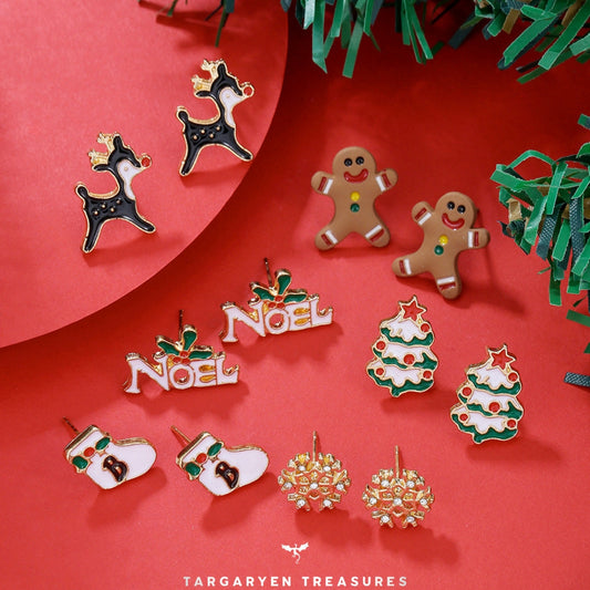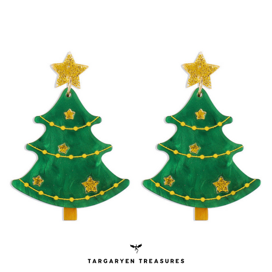 Rotatable Shiny Rhinestone Snowflake Christmas Tree Earrings