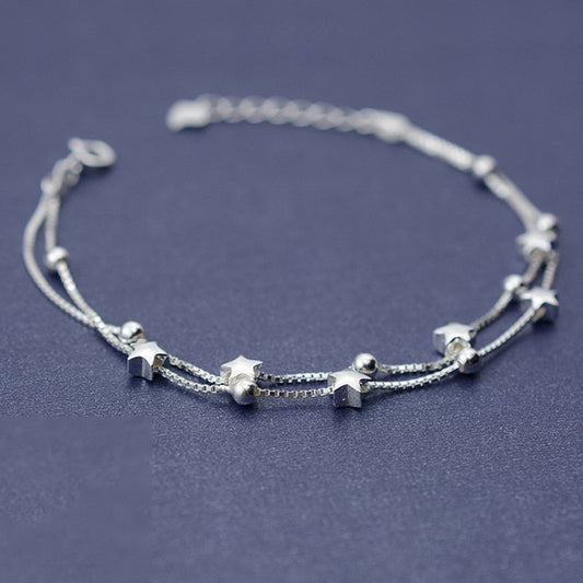 Five-pointed Star Square Sugar Round Beads Silver Bracelet