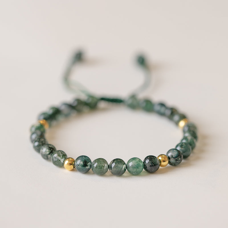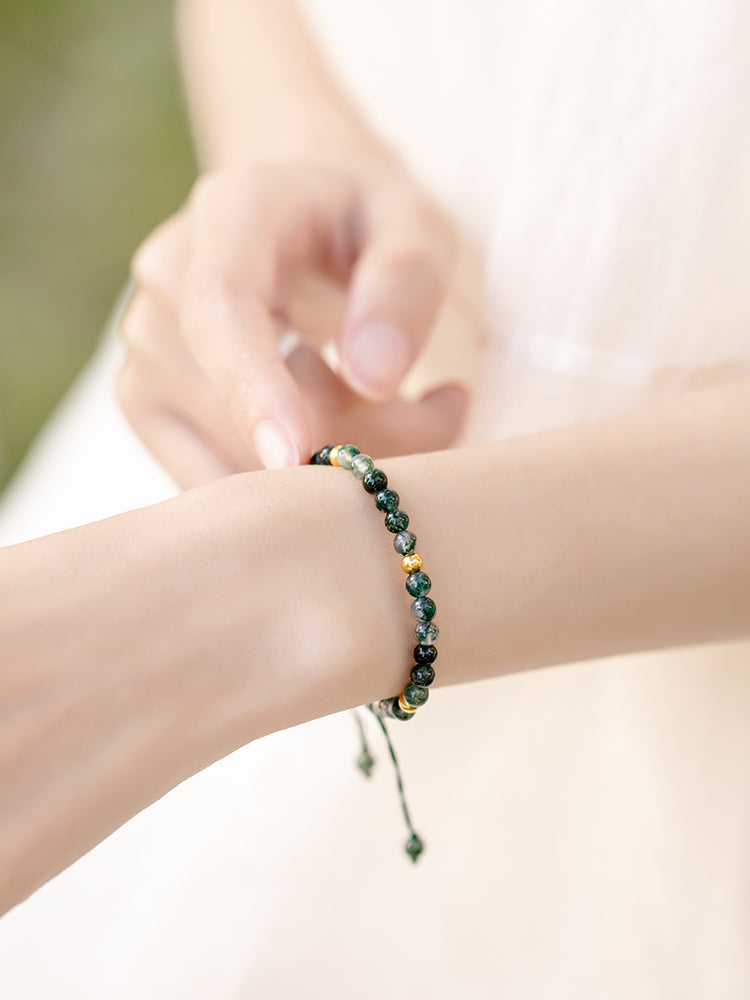 Aquatic Agate 14K Bag Gold Bracelet Handmade Jewelry Niche Gift Green Lucky Transfer Beads Female Retro