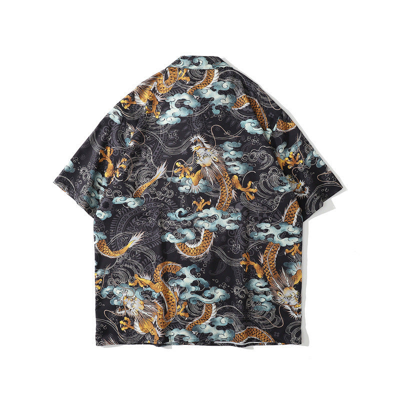 Chinese Style Dragon Full Print Short Sleeve Shirt Men's