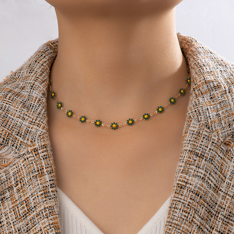 Colorful Flower Dripping Oil Bracelet And Necklace Set Ornament