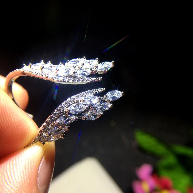 Creative Angel Wings Opening Ring Exquisite Women's Rhinestone Rings Personalized Jewelry