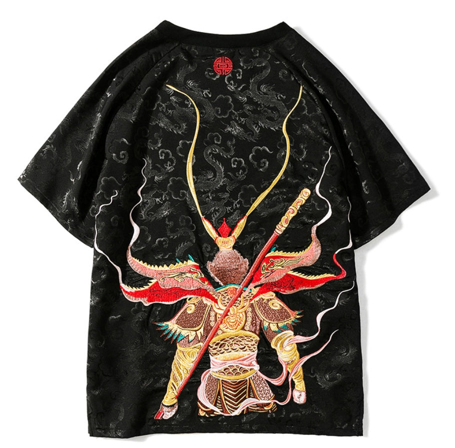 Embroidered Sun Wukong Retro Dragon T-Shirt
