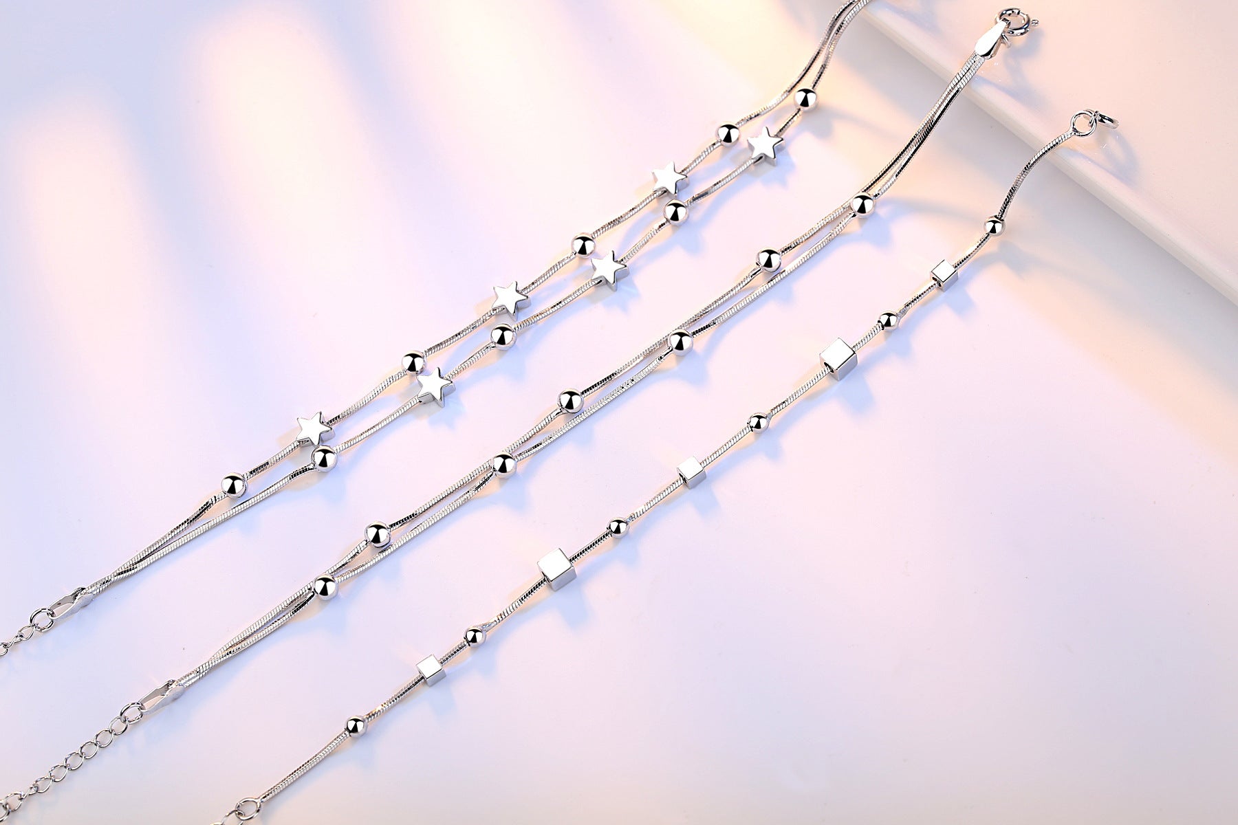 Five-pointed Star Square Sugar Round Beads Silver Bracelet