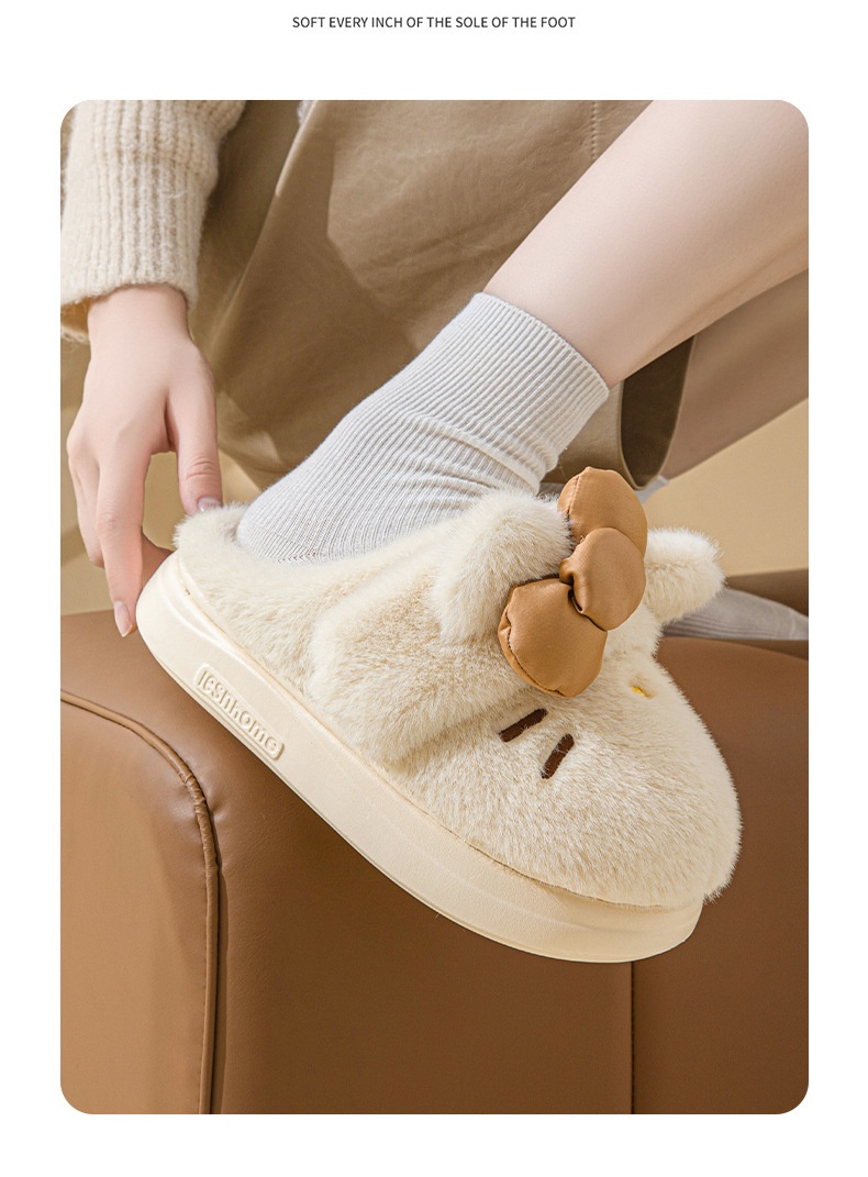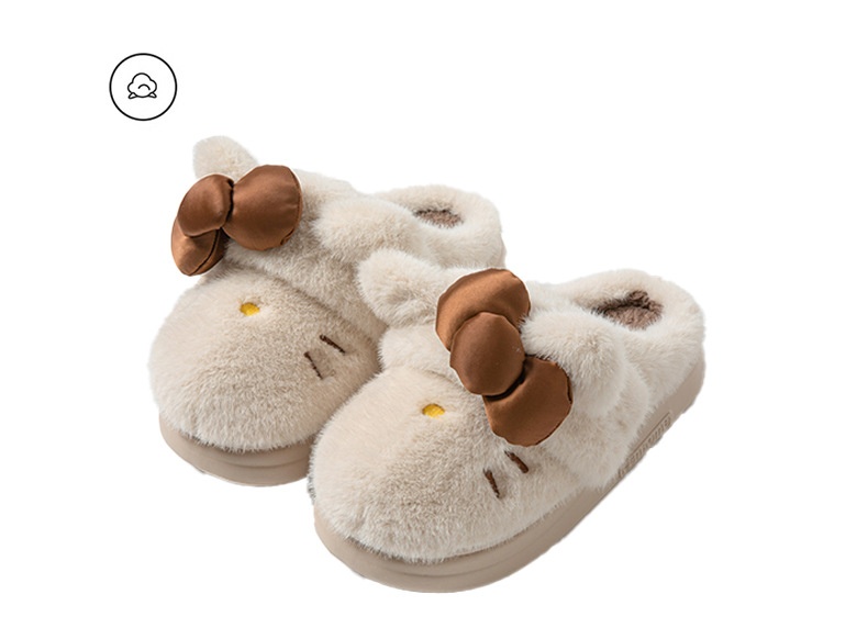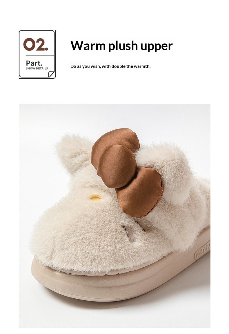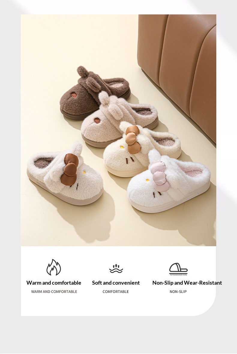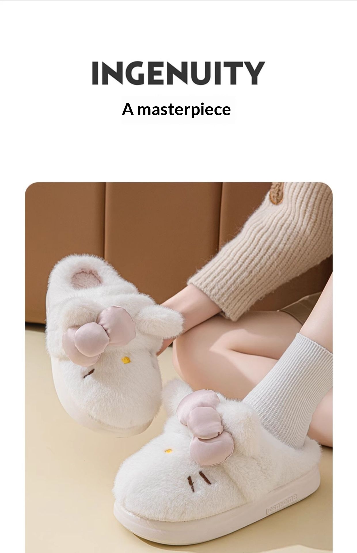 Instagram-Style Fluffy Cotton Slippers With A Cat And Bow Design For Cozy Warmth