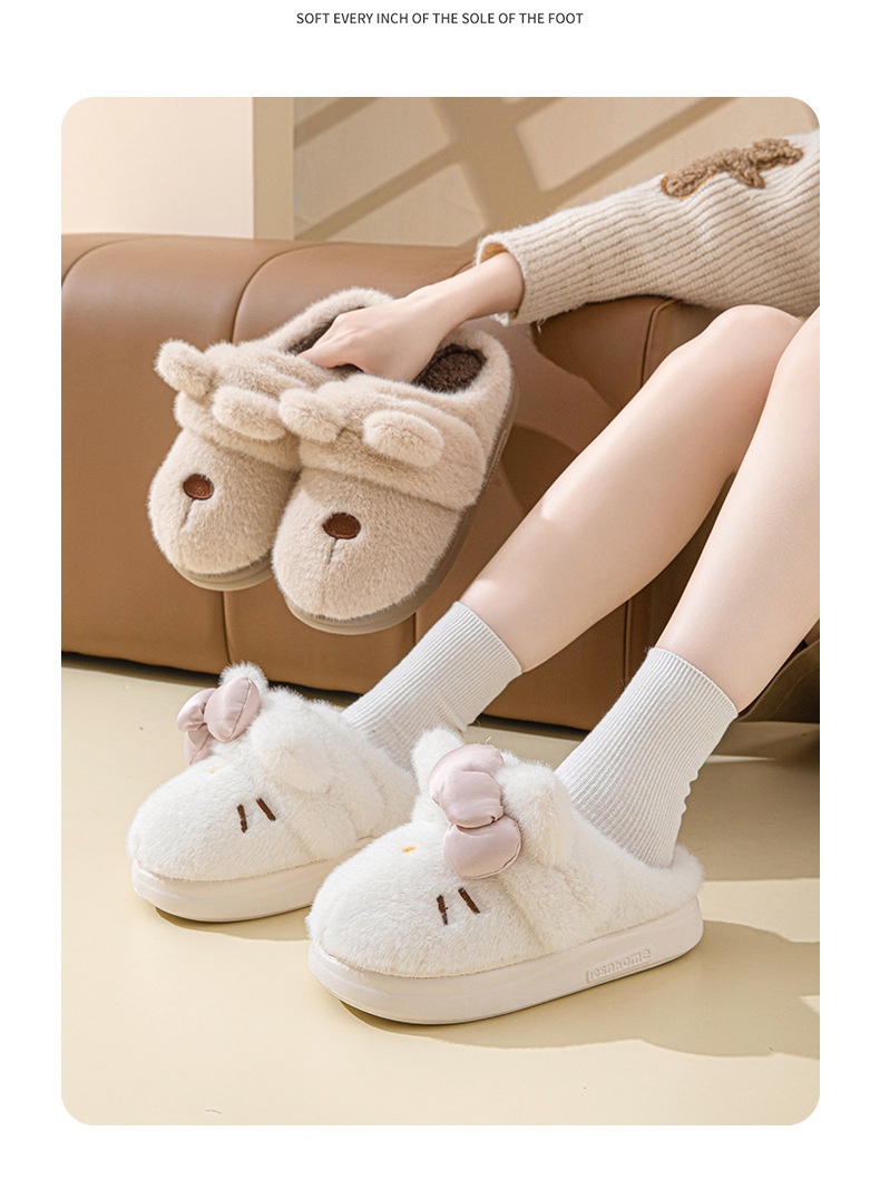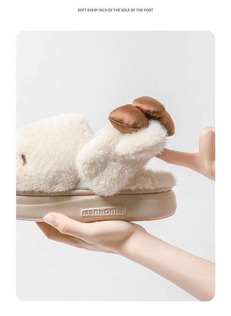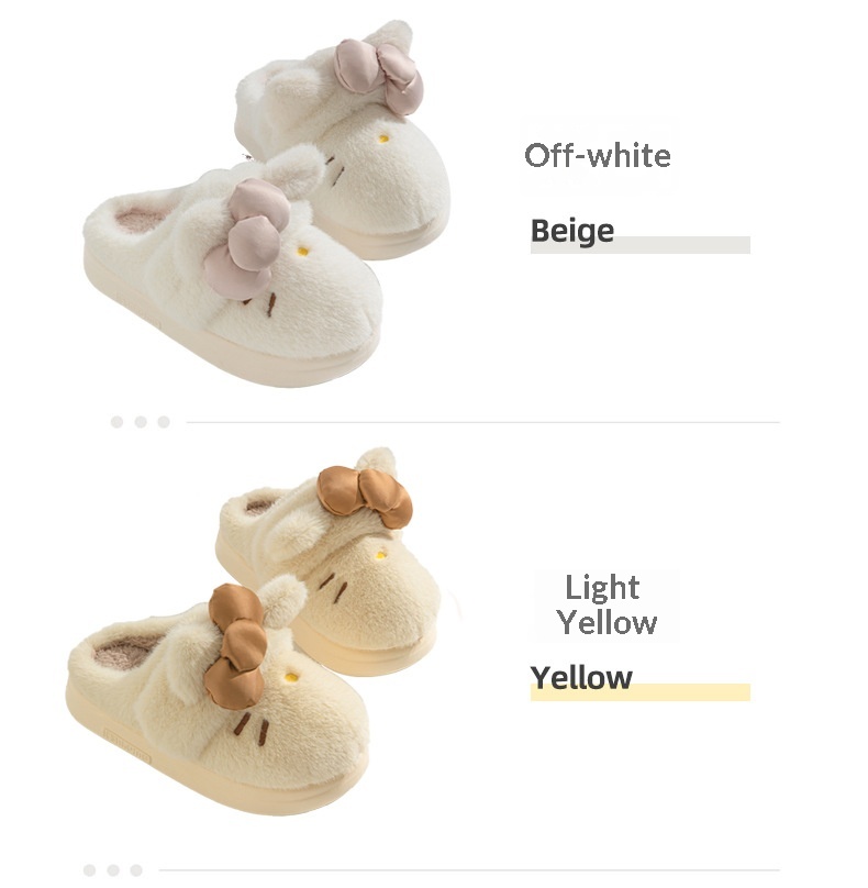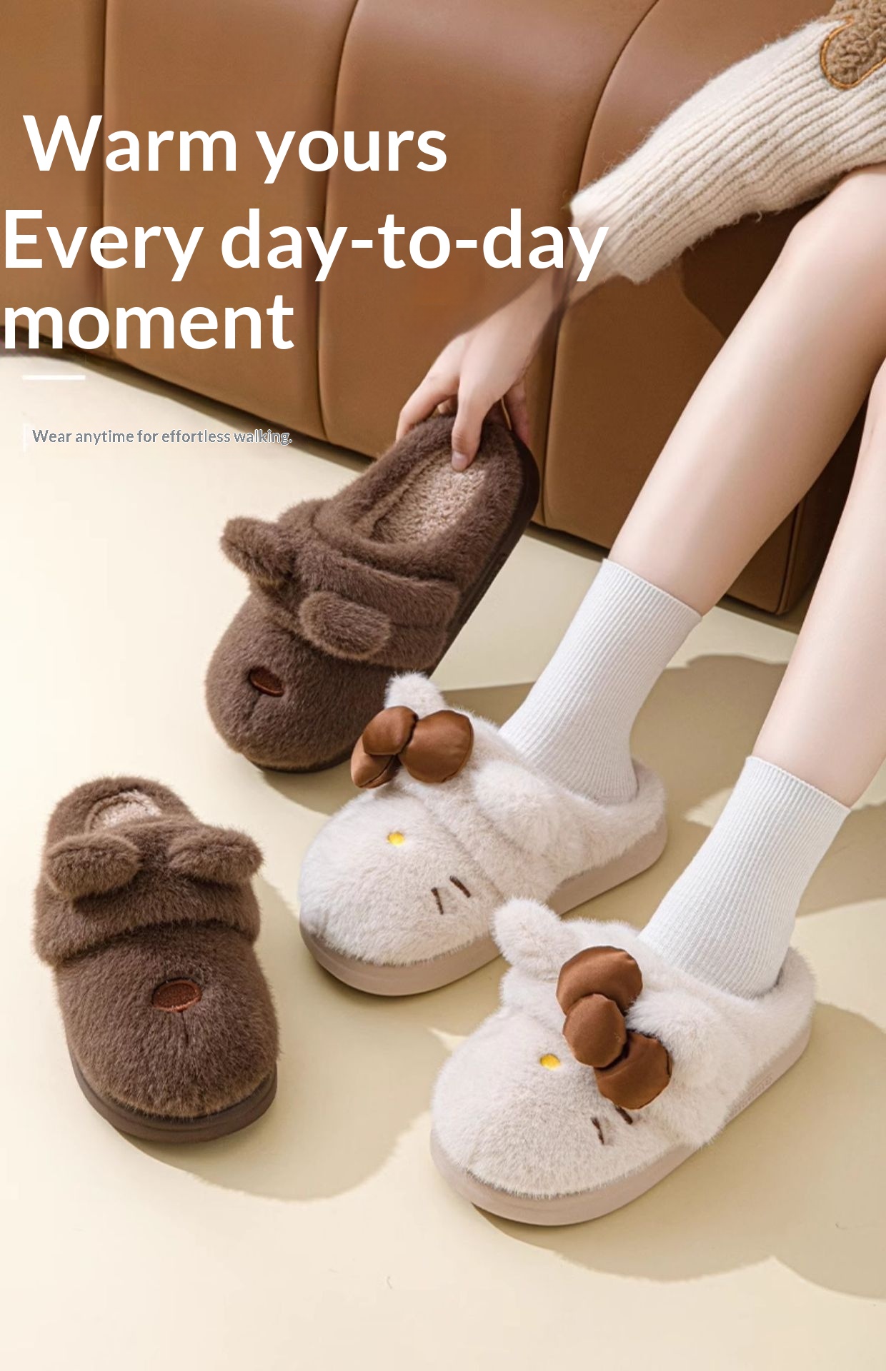 Instagram-Style Fluffy Cotton Slippers With A Cat And Bow Design For Cozy Warmth