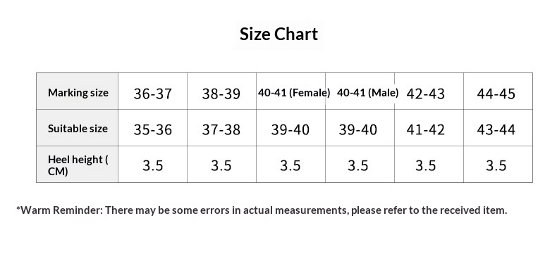 Size: 36–37 (recommended for feet size 35–36), 38–39 (recommended for feet size 37–38), 40–41 (recommended for feet size 39–40), 42–43 (recommended for feet size 41–42)