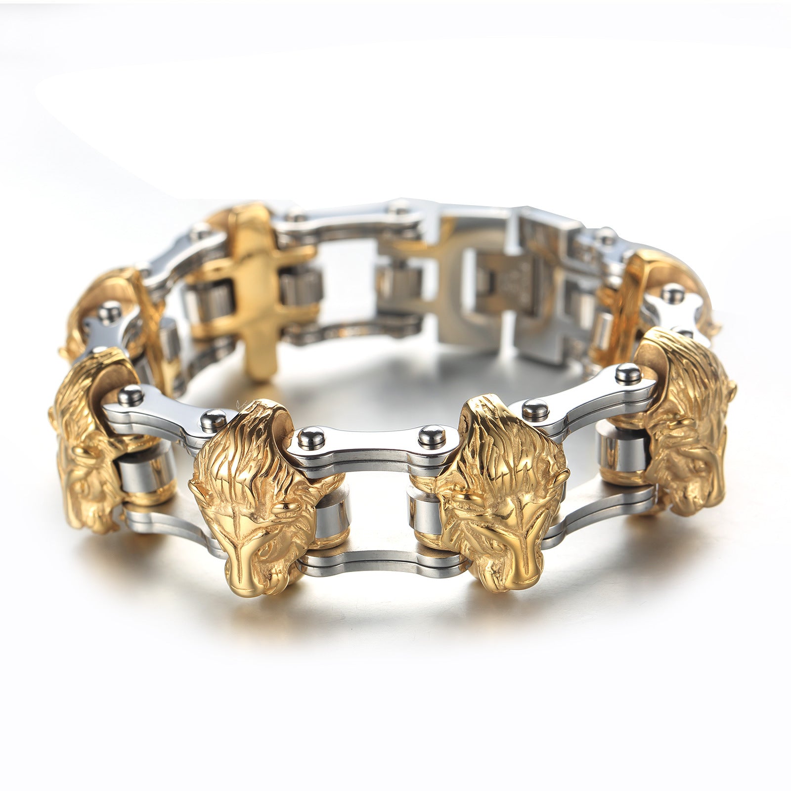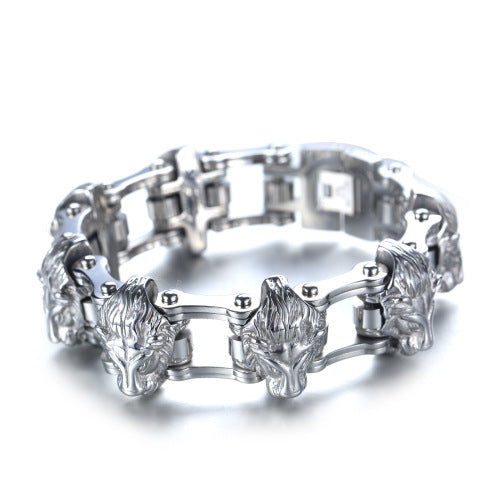 〖Baby Name〗: Fashionable thick chain men's lion head titanium steel bicycle bracelet