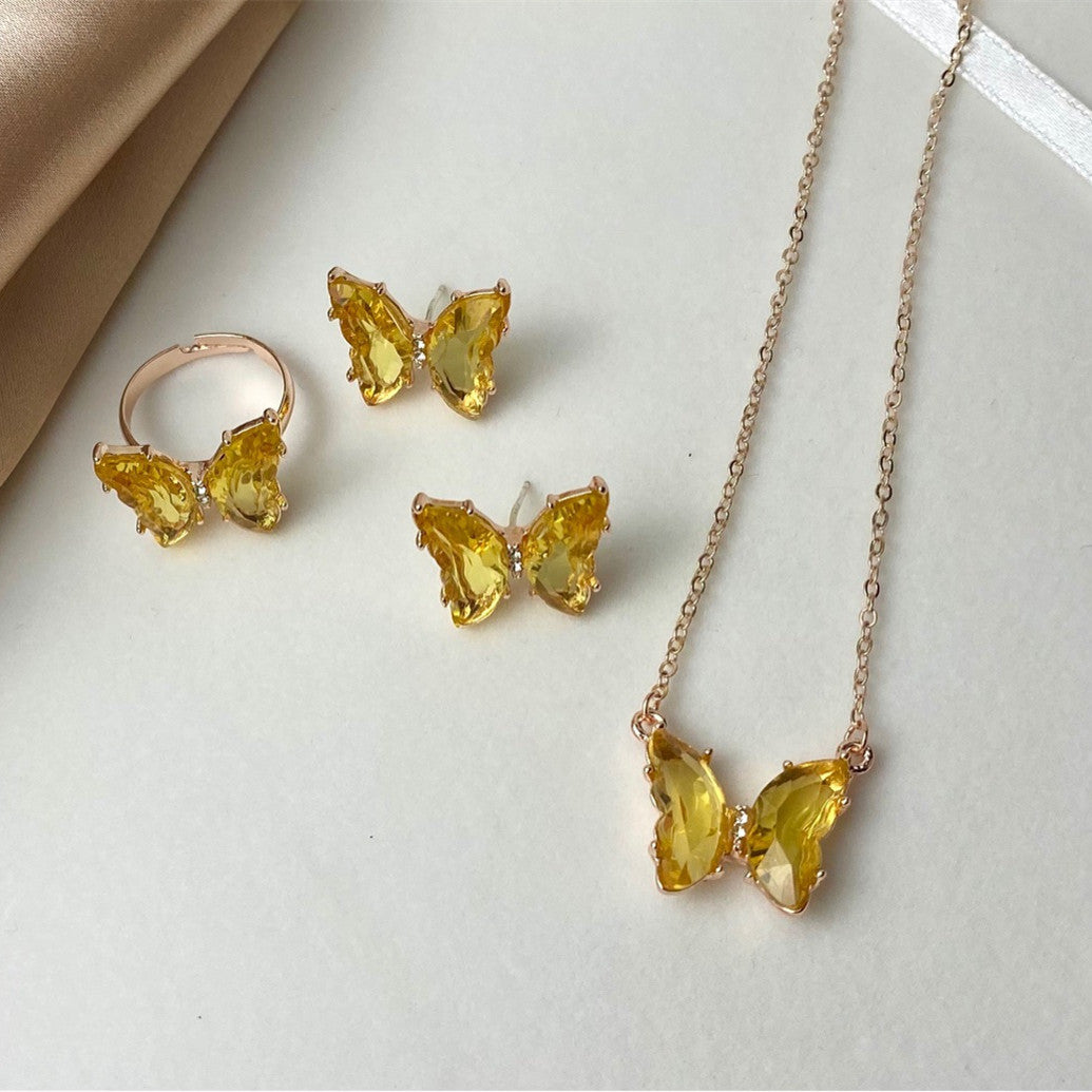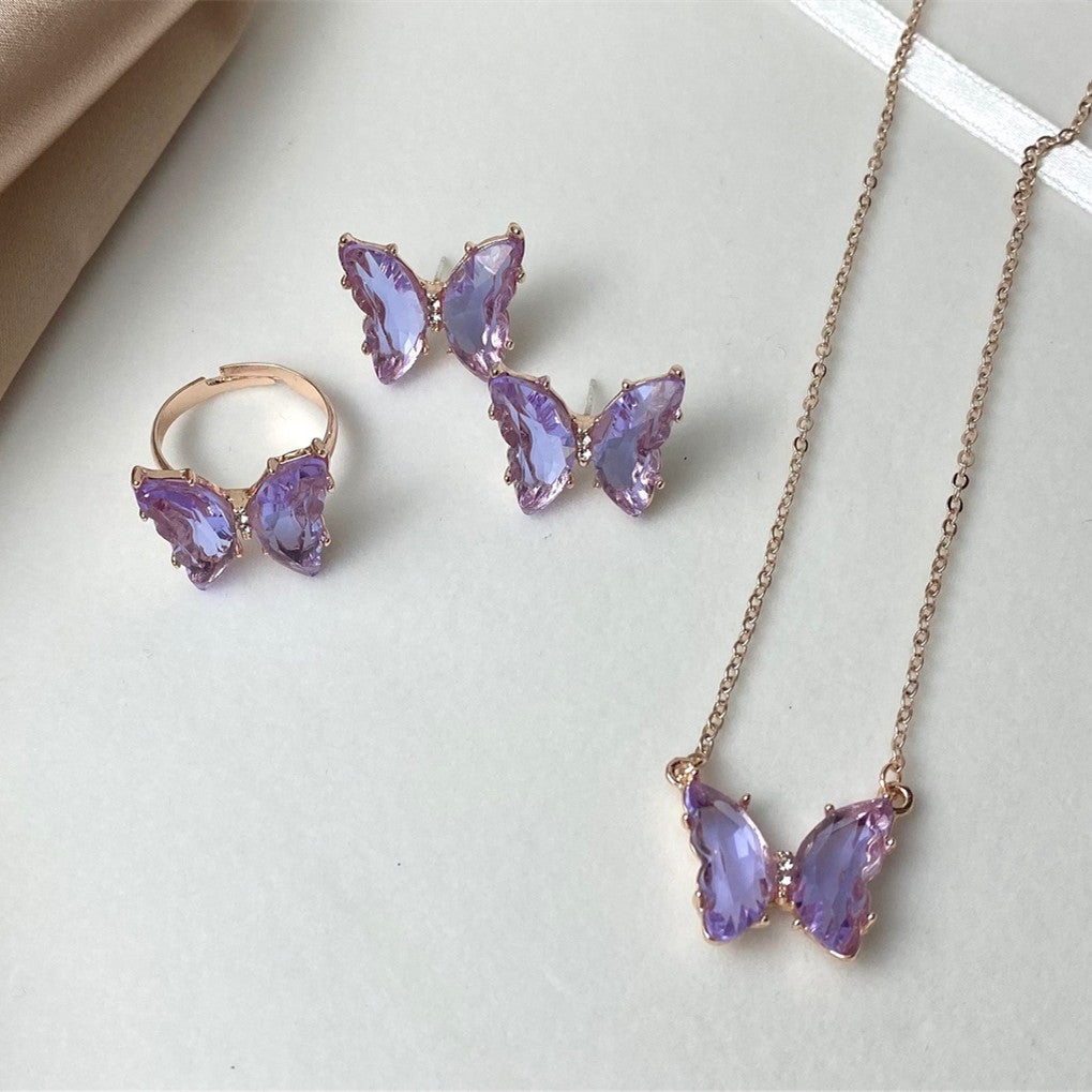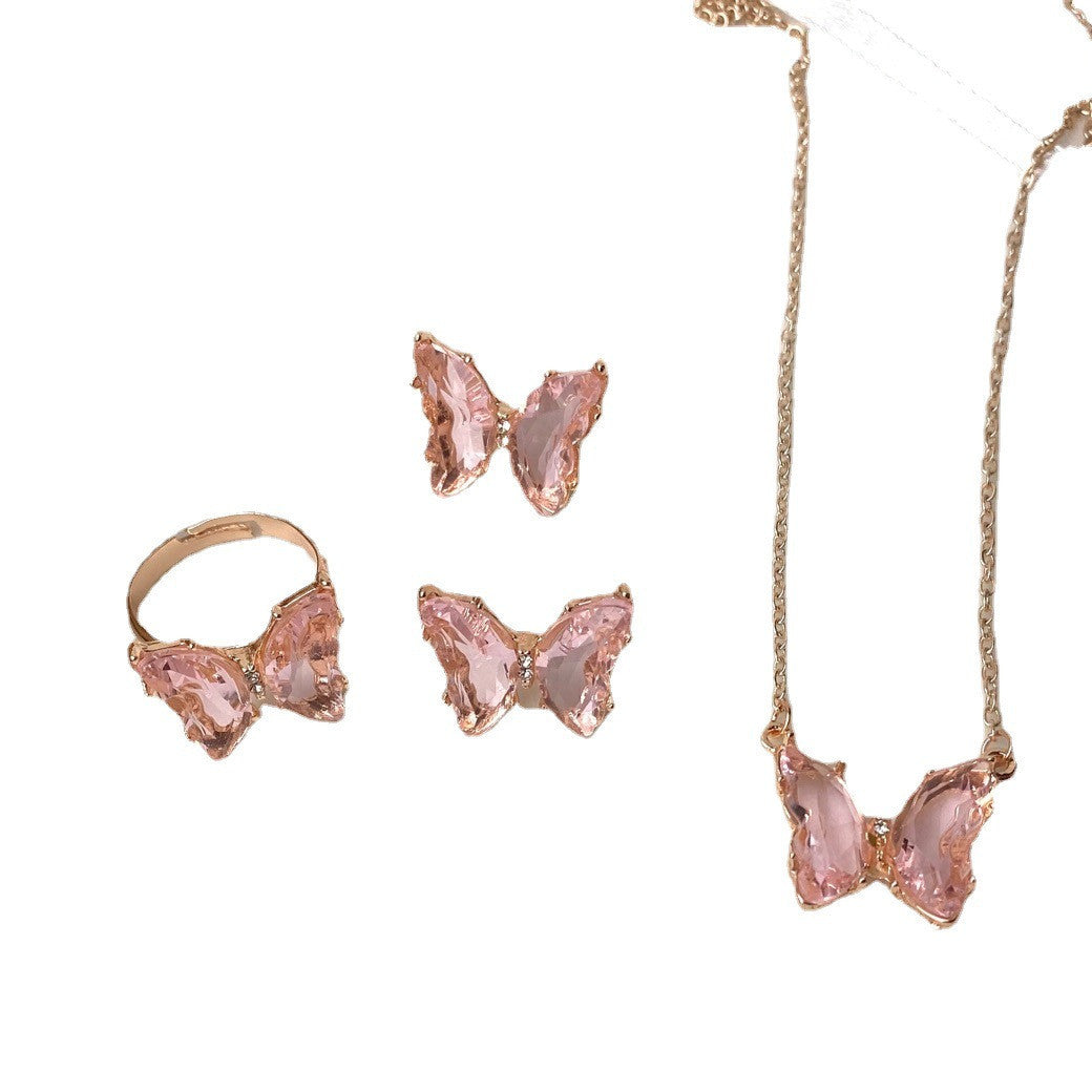 Super Fairy Girl Dream Glass Crystal Set Butterfly Necklace