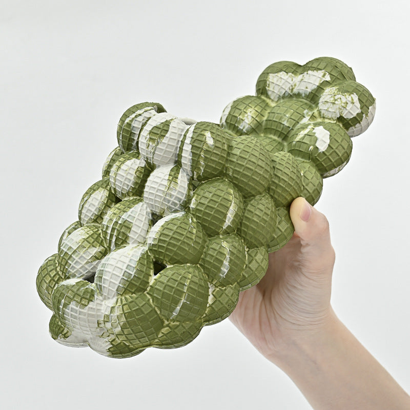 【Confortable Round Toe】The smooth round toe slides with excellent foot support, liberate your feet, and the foam insole slightly reduces the pressure while walking and standing. Wear these lychee bubble slippers after playing basketball, super comfortable and relaxed.