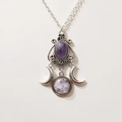 Triple Moon Goddess Amethyst Alloy Necklace